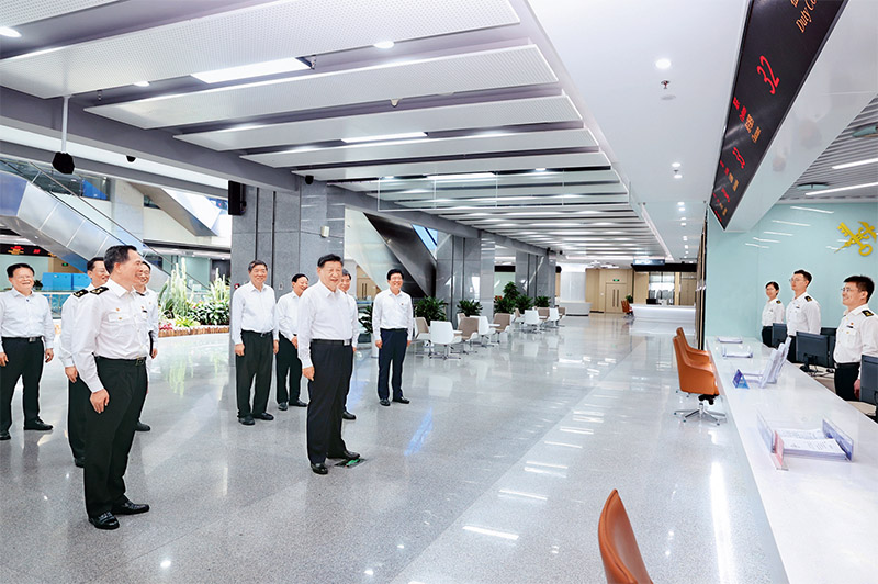 2024年10月15日至16日,中共中央总书记、国家主席、中央军委主席习近平在福建考察。这是16日上午,习近平在中国(福建)自由贸易试验区厦门片区考察时,同综合服务大厅窗口工作人员亲切交流。新华社记者 鞠鹏/摄